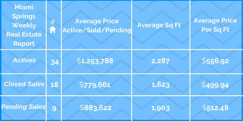 The table below shows the current status of the Miami Springs/VG real estate market as of April 17, 2026. All closed sales are within the last 90 days.