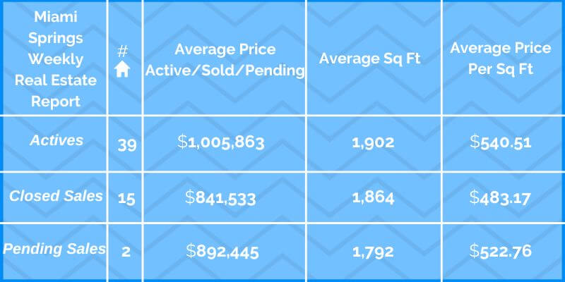 The table below shows the current status of the Miami Springs/VG real estate market as of November 28, 2025. All closed sales are within the last 90 days.