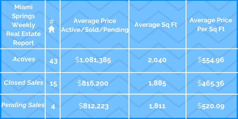 The table below shows the current status of the Miami Springs/VG real estate market as of December 12, 2025. All closed sales are within the last 90 days.