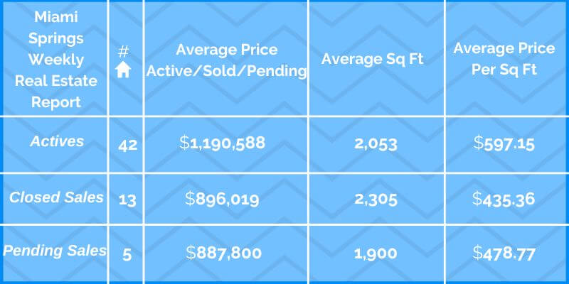 The table below shows the current status of the Miami Springs/VG real estate market as of January 30, 2026. All closed sales are within the last 90 days.