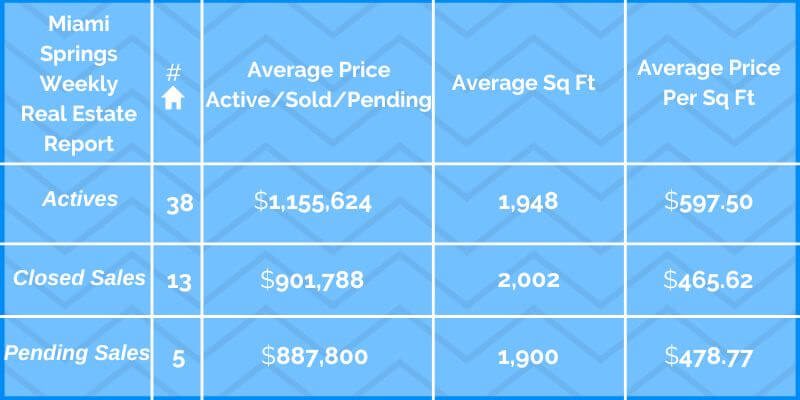 The table below shows the current status of the Miami Springs/VG real estate market as of January 23, 2026. All closed sales are within the last 90 days.