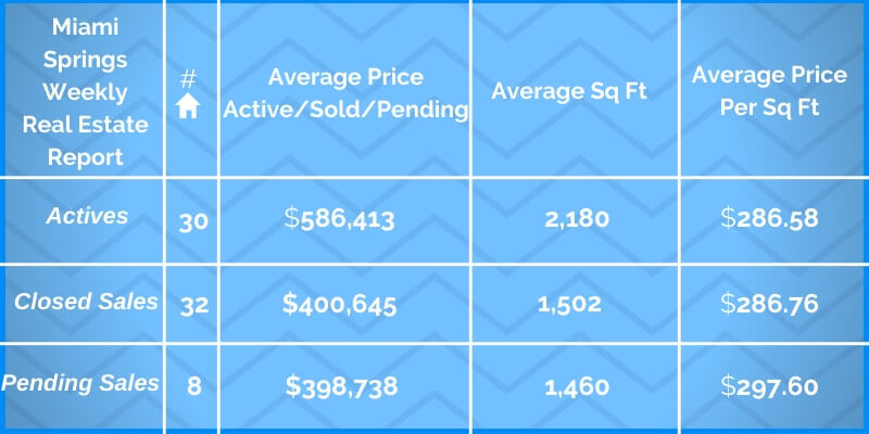 The table below shows the current status of the Miami Springs/VG real estate market as of Friday, May 8, 2020. All closed sales are within the last 90 days.