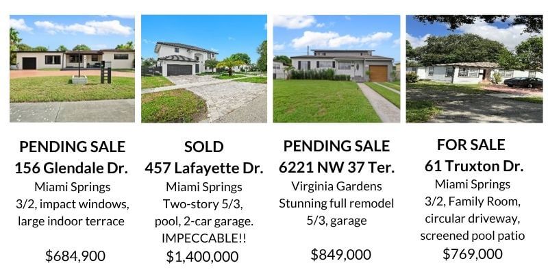 The Miami Springs/Virginia Gardens market saw an almost a fifteen-percent (15%) increase in inventory this week!! There are now forty-one (41) active listings. There are still qualified buyers looking for the right property despite slower demand. Sellers are seeing more price decreases, but high prices remain. Properties are staying on the market for longer but some houses still sell quickly. It all depends on pricing, condition, location, and of course, timing. Timing is everything.