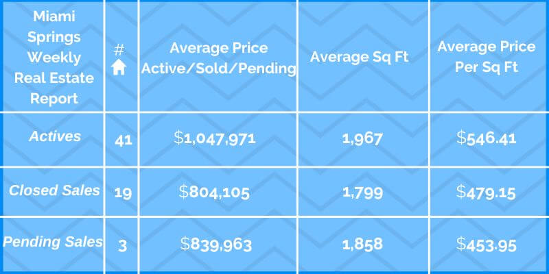 The Miami Springs/Virginia Gardens market saw an almost a fifteen-percent (15%) increase in inventory this week!! There are now forty-one (41) active listings. There are still qualified buyers looking for the right property despite slower demand. Sellers are seeing more price decreases, but high prices remain. Properties are staying on the market for longer but some houses still sell quickly. It all depends on pricing, condition, location, and of course, timing. Timing is everything.