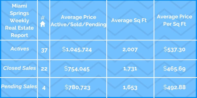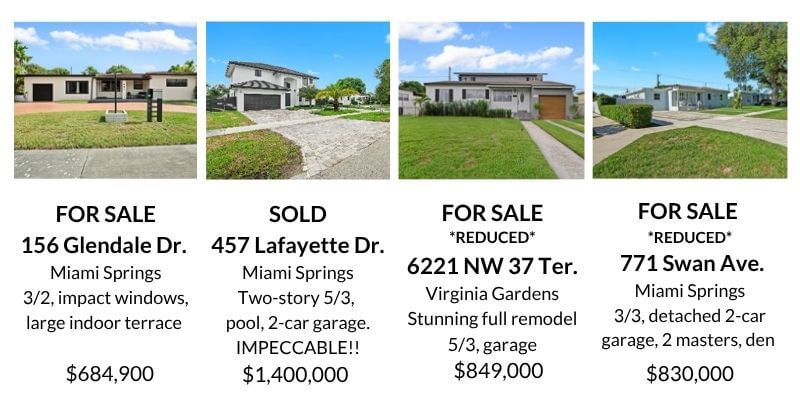 There are thirty-seven (37) active listings in the Miami Springs/Virginia Gardens real estate market this week. Prices remain strong for sellers but we are seeing more price decreases on active listings. Sixteen (16) of the active listings are over $1 million. Seventeen (17) listings have had a price reduction, three (3) this week. Despite relatively higher interest rates, there are still many qualified buyers out there. Inventory increases in the months ahead? We think so!
